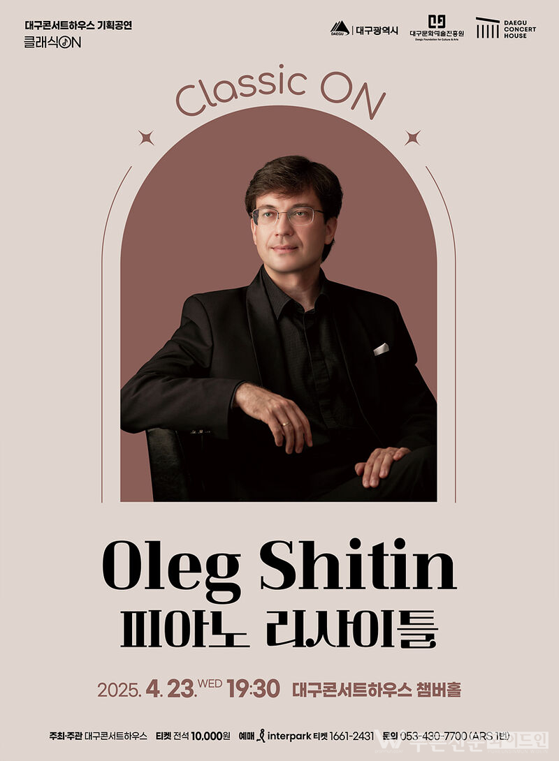 대구콘서트하우스는 4월 ‘클래식 ON(클래식 온)’ 시리즈로 ‘Oleg Shitin(알렉 쉬친) 피아노 리사이틀’을 오는 23일(수) 저녁 7시 30분 챔버홀에서 개최한다고 전했다.