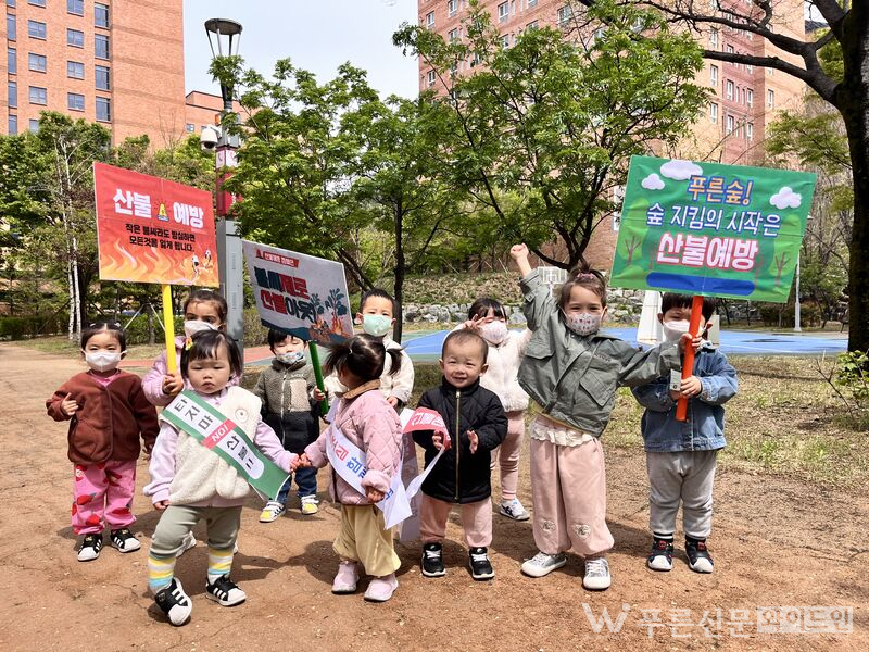 어린이들은 피켓과 어깨 띠를 착용하고, 어린이집 인근 공원과 유동인구가 많은 거리 곳곳에서 산불 예방 메시지를 전했다. 특히 ‘미래세대’의 주인공인 아이들이 직접 참여함으로써, 캠페인의 상징성과 효과는 더욱 커졌다.