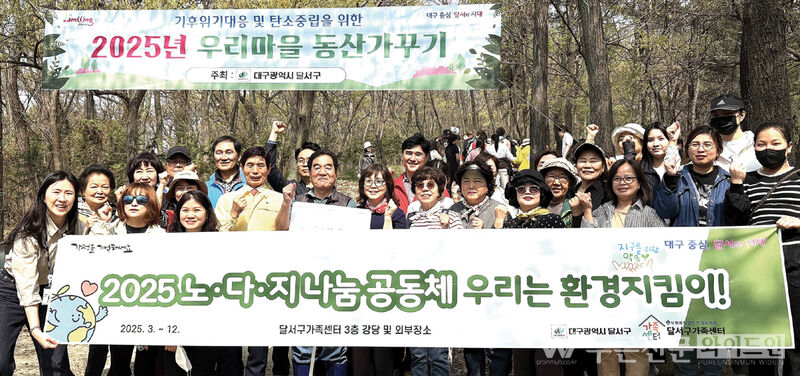 달서구는 와룡산 자락길에서 ‘노다지 나눔공동체’ 사업 참여자와 지역 주민 110여 명이 함께하는 ‘편백나무 500그루 심기 행사’를 성황리에 개최했다.