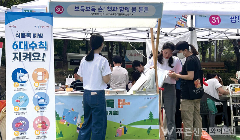 4월 4일 지하철 2호선 용산역에서 캠페인을 시작으로, 4월 9일에는 계명문화대학교에서 보건소와 함께 다양한 참여형 프로그램을 운영했다. 이어 4월 19일 본리어린이공원에서 열린 ‘북(Book)소리 축제’에서는 달서구 어린이·사회복지급식관리지원센터와 연계하여 홍보 부스를 설치하고, 어린이 및 가족 단위 방문객들에게 손 씻기의 중요성과 식중독 예방 수칙을 쉽고 재미있게 전달했다.