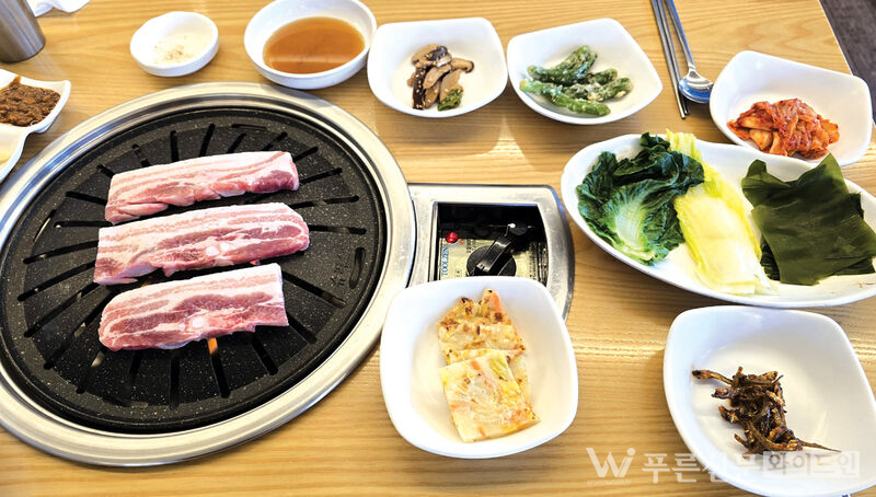 그 중에서도 단연 인기 메뉴는 ‘삼겹살쌈밥정식’이다. 점심시간에 고기를 굽는 일이 부담스러울 수도 있지만, 이곳의 정식은 그런 걱정을 단번에 날려버린다. 쫄깃하고 고소한 국내산 삼겹살이 먹기 좋게 제공되며, 싱싱한 쌈 채소와 함께 정갈하게 차려진 반찬, 찌개까지 곁들여져 있어 맛과 영양을 동시에 잡았다. 한 끼 식사로 손색이 없을 정도로 만족스럽다.