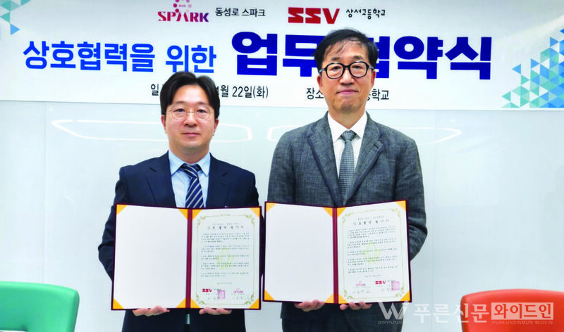 상서고등학교(교장 이창호)는 지난달 28일(월) 대구 동성로 복합문화공간 스파크(SPARK)와 산학협력 강화를 위한 업무협약(MOU)을 체결했다.