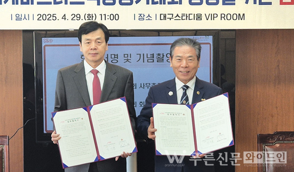 2026대구세계마스터즈육상경기대회 조직위원회(사무총장 진기훈)와 대구광역시 재향군인회(회장 김인남)는 지난달 29일(화) 오전 11시 대구스타디움에서 업무협약(MOU)을 체결하고, 대회의 원활한 운영과 성공적 개최를 위한 다각적인 협력에 나선다.
