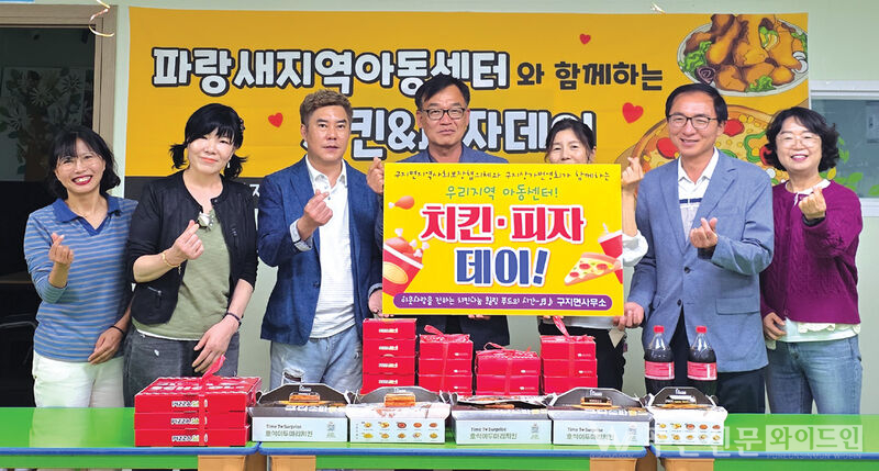 구지면 보둠지역사회보장협의체(위원장 백윤태)와 구지상가번영회(회장 이효찬)가 지난 1일(목) 어린이날을 맞아 ‘우리지역 아동센터 치킨 & 피자데이’ 사업의 일환으로 파랑새 지역아동센터에 치킨과 피자를 전달했다.