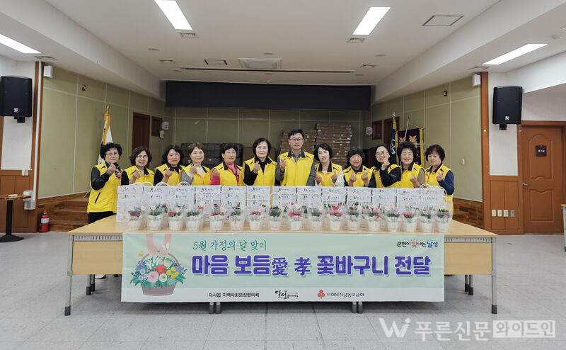 가정의 달을 맞아 다사읍 지역사회보장협의체가 복지 사각지대 해소와 나눔 문화 확산을 위해 발 벗고 나섰다. 협의체 위원들은 관내 독거 어르신 가정을 직접 방문해 정성껏 준비한 꽃바구니와 떡 세트를 전달하며 따뜻한 안부를 전했다.