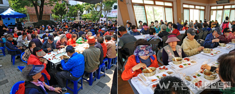 정성스레 준비한 식사를 드시는 마을 어르신들 [사진=이원선기자]