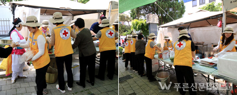 감삼동 적십자 늘품봉사회가 어르신들께 대접할 식사준비로 분주하다. [사진=이원선기자]