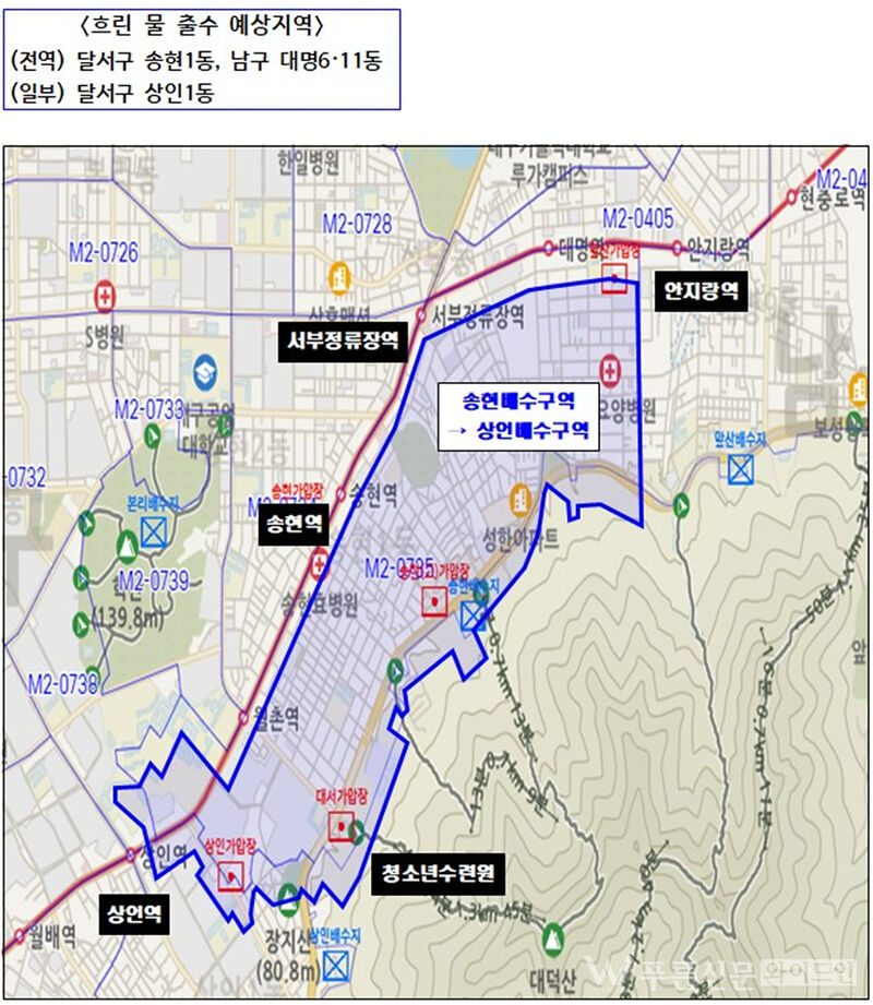 흐린 물 출수 예상지역 [자료제공=대구시]