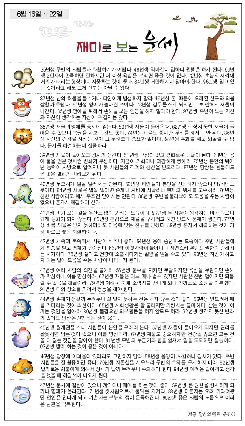 재미로 보는 운세(6월 16일~22일)