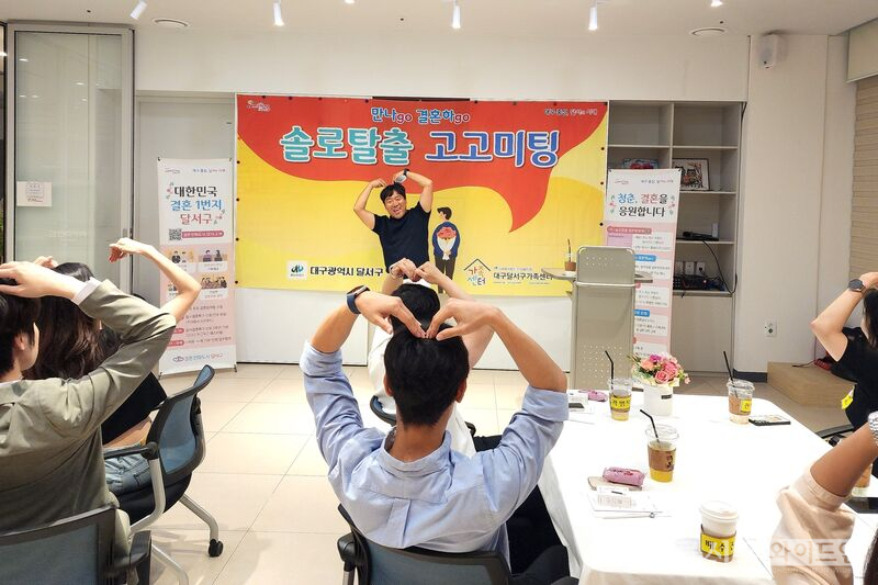 이번 미팅에는 ‘솔로탈출 결혼원정대’에 가입한 남녀 각 5명, 총 10명이 참가했으며, 달서구 관내 한 카페에서 진행됐다. 행사는 연애 코칭 전문 사회자의 진행 아래, 어색한 분위기를 풀어주는 아이스브레이킹 게임, 참가자 간 1:1 로테이션 대화 등 다양한 프로그램으로 구성되어 참가자들이 자연스럽게 서로를 알아가는 시간을 가졌고, 그 결과, 2쌍의 커플이 매칭되어 향후 진지한 만남을 이어갈 예정이다.