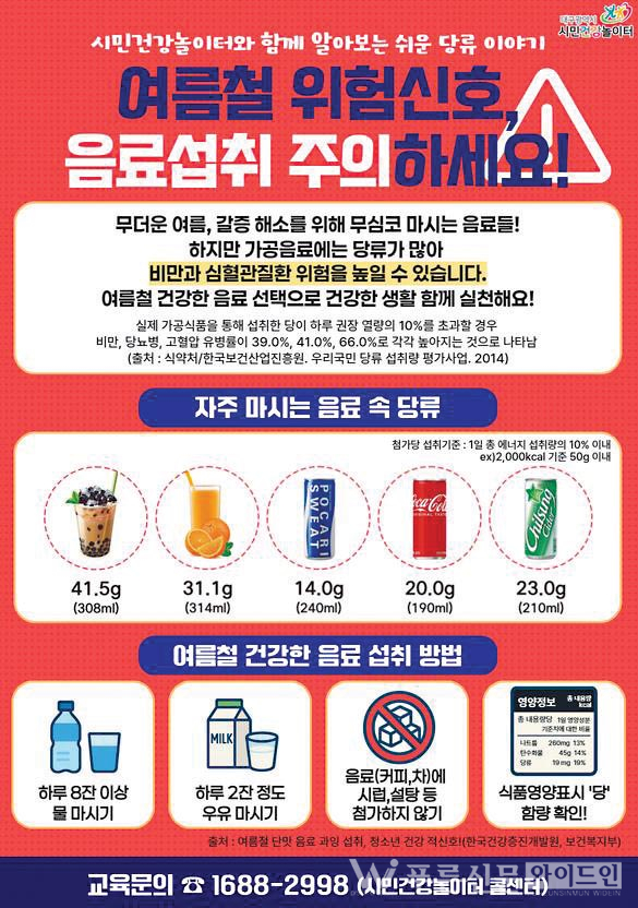 대구광역시는 무더위 속 갈증 해소를 위해 고당류 음료와 간식의 소비가 급증함에 따라, 시민 건강 보호를 위한 당류 과잉 섭취 예방에 본격 나섰다.