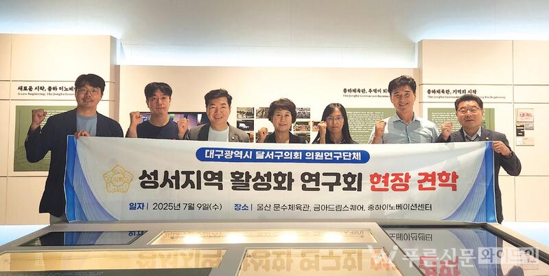달서구의회 ‘성서지역 활성화 연구회’(대표 권숙자 의원)는 지난 9일(수) 울산을 방문해 금아드림스퀘어, 문수체육관, 종하이노베이션센터 등 복합문화시설을 견학했다. 연구회는 시설 운영과 시민 프로그램을 살펴보고 성서지역 개발에 적용할 방안을 논의했다.