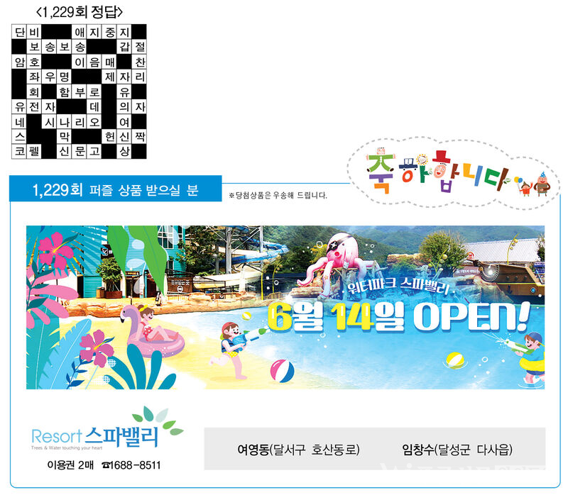 ♣ ‘가족과 함께 풀어보세요’정답을 아시는 분은 본사 편집부로 보내주시기 바랍니다. 8월 12일(화)까지 도착된 엽서 중에서 추첨을 통해 상품을 드립니다. 주소를 정확히 기재해 주십시오. 당첨상품을 우송해 드립니다.