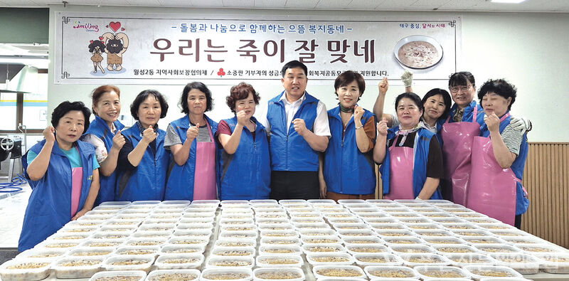 월성2동-지역사회보장협의체 영양죽 나눔 [자료제공=달서구청]달서구 월성2동은 지역사회보장협의체와 함께 여름철 기력이 떨어지기 쉬운 어르신들을 위해 영양죽 나눔 사업 ‘우리는 죽이 잘 맞네’를 진행했다.