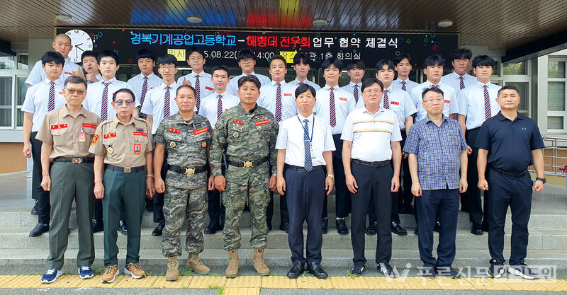 경북기계공고-해병대전우회, 군 특성화·봉사활동 협약 체결 [자료제공=경북기계공업고등학교]경북기계공업고는 지난 22일(금) 해병대전우회 대구연합회와 군 특성화 프로그램 운영 및 지역 봉사활동 협력을 위한 업무협약을 맺었다.