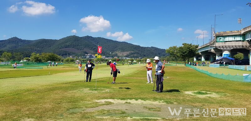 ▲참가 선수가 신중한 자세로 퍼팅을 하고 있다. 김영조 기자