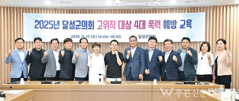 달성군의회, 4대 폭력 예방교육 실시 [사진제공=달성군의회]달성군의회(의장 김은영)는 지난 17일(수) 전 의원과 직원이 참석한 가운데 4대 폭력 예방교육을 진행했다.