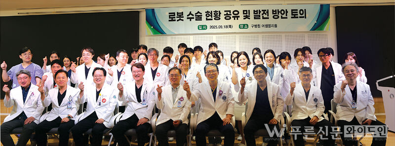 로봇수술 발전방안 세미나 개최 [사진제공=구병원]구병원(병원장 구자일)은 지난 18일(목) 어셈블리홀에서 로봇수술센터 의료진과 관계자들이 참석한 가운데 ‘로봇수술 발전방안 세미나’를 열었다.