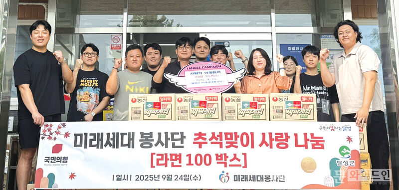 달성군 미래세대봉사단(단장 지경일)은 추석을 맞이하여 지난달 24일((수) 현풍읍 행정복지센터에 라면 25박스를 전달했다.