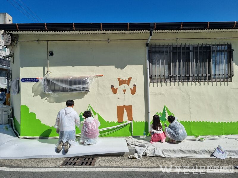 이날 행사에는 현풍읍 새마을회원과 계명대학교 동아리 학생, 지역아동센터 어린이, 마을 어르신 등 30여 명이 함께 참여해 회색 담장을 생동감 넘치는 그림으로 채웠다.