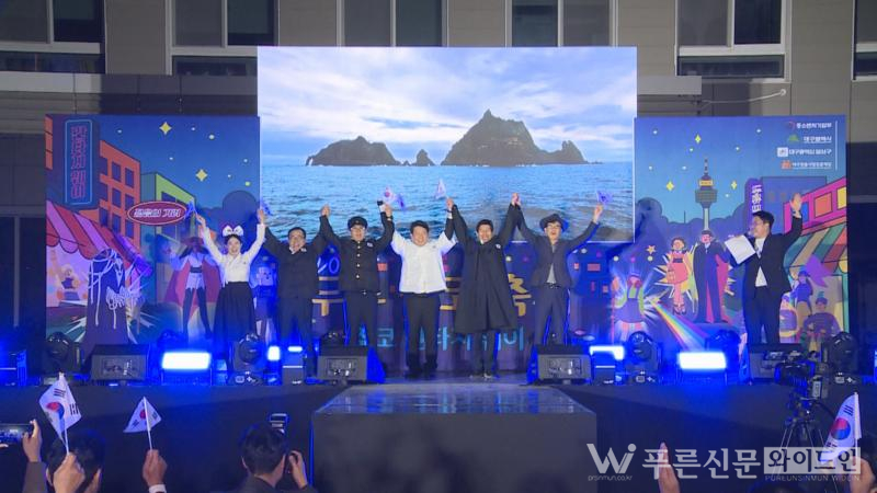 이태훈 달서구청장을 비롯한 주요 내빈들이 독립운동가 복장으로 무대에 올라 ‘홀로 아리랑’을 합창하고, 시민들과 함께 “독도는 우리 땅”을 외치며 역사적 의미와 애국심을 되새기는 시간을 가졌다.