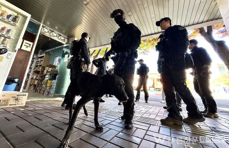 • 경찰 특공대·폭발물 탐지견 투입해 수색 중…발신자 추적 중