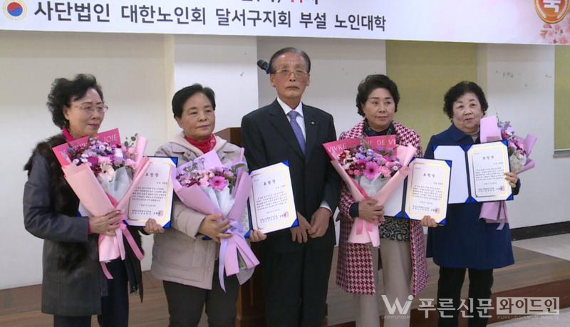대한노인회 달서구지회가 지난 2일 지회 회의실에서 제22기 노인대학 졸업식을 열고, 올 한 해 배움의 열정을 이어온 200명의 어르신들에게 졸업장을 수여했다.