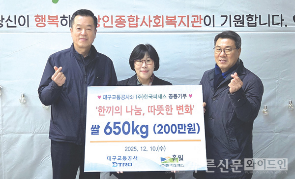 대구교통공사와 ㈜한국피제스는 지난 10일(수) 달서구 상인종합복지관에서 지역 결식아동과 소외계층을 위해 쌀 650㎏를 전달했다.
