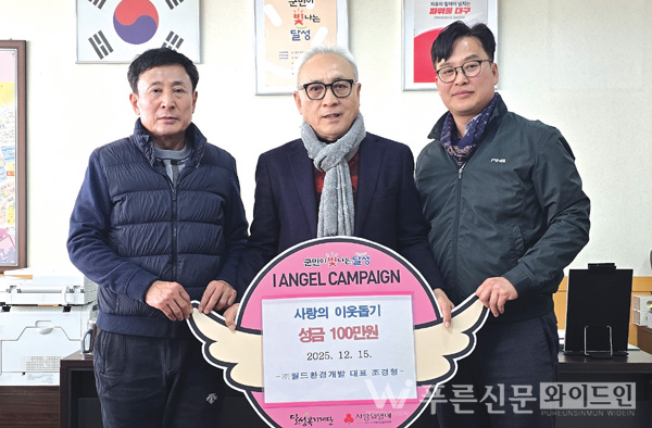 현풍읍의 ㈜월드환경개발(대표 조경형)이 연말을 맞아 지역 내 어려운 이웃을 위해 성금 100만 원을 기탁했다.