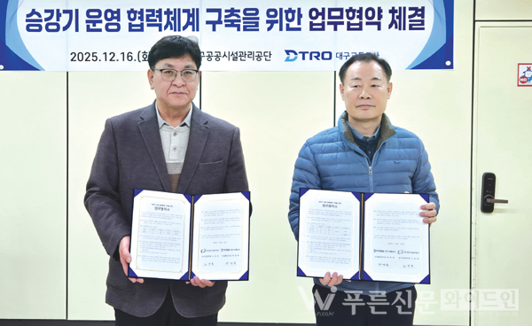 대구공공시설관리공단이 대구교통공사와 지하도상가·지하철역사 승강기 운영 협력을 위한 업무협약을 체결했다.