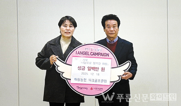화원농협 파크골프클럽(회장 하용하)이 지난 18일(목) 관내 취약계층을 위해 성금 100만 원을 기탁했다.