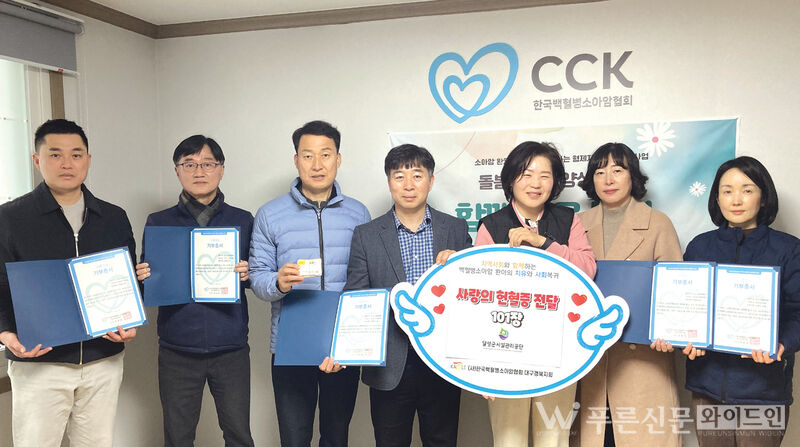 달성군시설관리공단은 지난 16일(화) 한국백혈병소아암협회 대구·경북지회에 헌혈증서 101장을 기부했다.