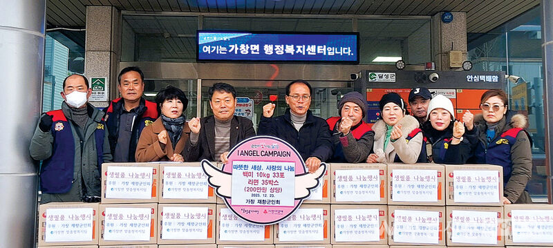 가창 재향군인회(회장 배철순)는 지난해 12월 23일(화) 라면 35박스와 백미 10㎏ 33포 등 200만 원 상당의 물품을 가창면 행정복지센터에 기탁했다.