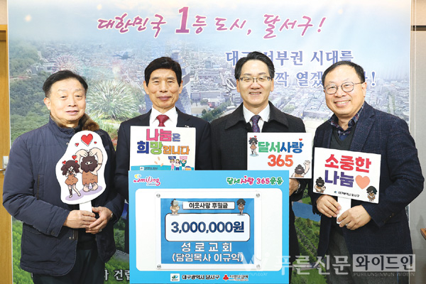 성로교회(담임목사 이규익)가 달서구 취약계층 지원을 위해 후원금 300만 원을 기탁했다.