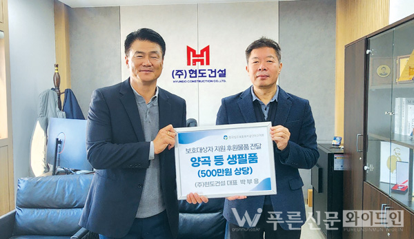 ㈜현도건설(대표 박부용)은 지난해 12월 30일(화) 한국법무보호복지공단 대구지부를 방문해 500만 원 상당의 양곡을 기부했다.