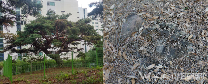 300여 년 넘게 마을을 지켜온 당산나무의 예전모습(왼쪽. 사진제공=달서구청)과 벌목 후 흔적만 남아있는 지금의 모습(오른쪽)