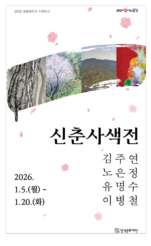 달성군 참꽃갤러리가 2026년 첫 기획전 ‘신춘사색전’을 1월 20일(화)까지 선보인다. 이번 전시는 자연을 주제로, 각기 다른 시선과 감각으로 풍경을 해석한 네 명의 작가 작품을 한자리에서 만날 수 있는 자리다.