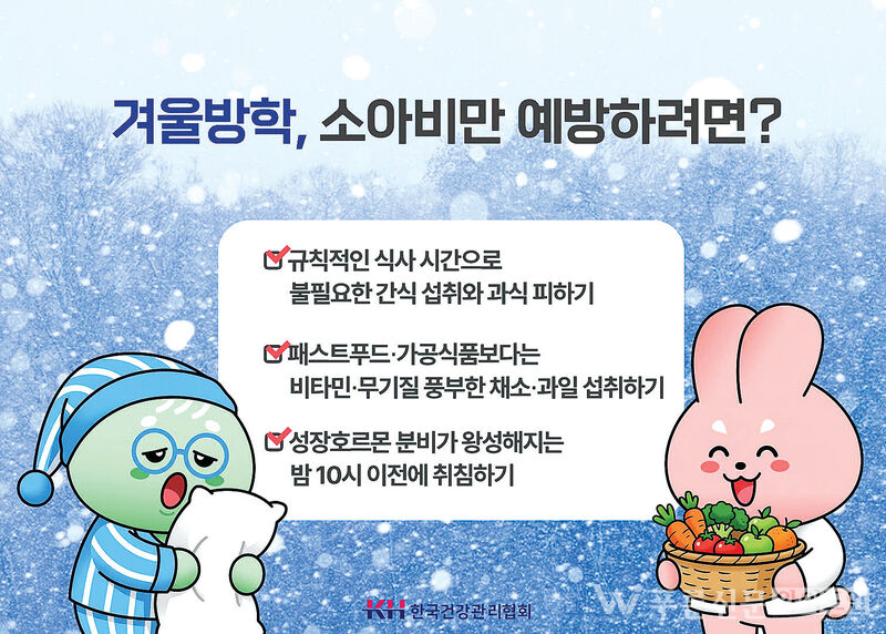 KH한국건강관리협회 대구북구건강검진센터 허정욱 원장은 “겨울방학은 에너지 섭취에 비해 소비가 크게 줄어드는 시기로, 소아청소년 비만이 급격히 진행될 수 있다.”며 “이 시기에 쌓인 체지방은 단기적인 체중 증가를 넘어 장기적인 대사 이상으로 이어질 가능성이 높다.”고 말했다.