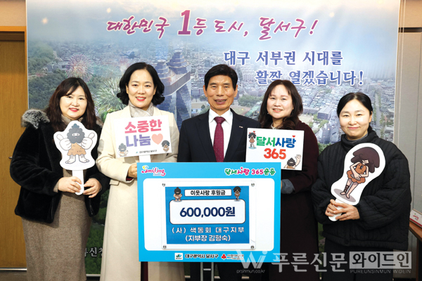 (사)색동회 대구지부(지부장 김형숙)는 지난 22일(목) 달서구청에 관내 취약계층 지원을 위한 후원금 60만 원을 기부했다.