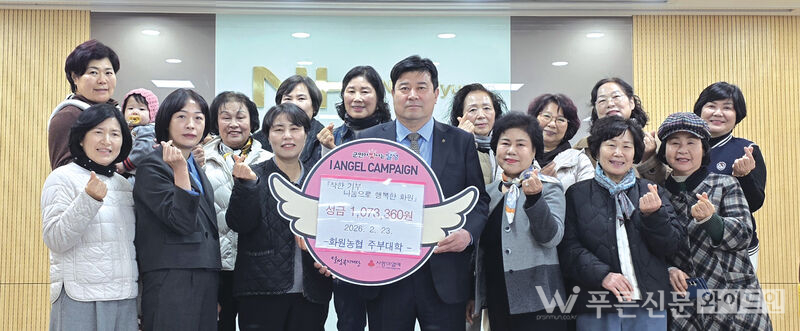 화원농협 주부대학은 지난 23일(월) 화원읍 행정복지센터에 107만 3,360원을 전달했다. 이번 성금은 회원들이 우리쌀 소비 촉진을 위해 떡국떡 판매 수익금 일부로 마련했다.