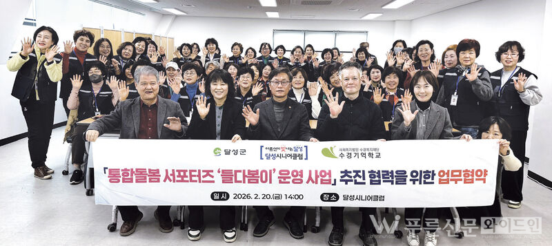 달성군은 달성시니어클럽·수경기억학교와 함께 통합돌봄 서포터즈 ‘들다봄이’ 사업 업무협약을 체결했다. 은퇴 전문인력 50명이 참여해 안부 확인, 치매 예방, 복약 모니터링 등 맞춤형 건강돌봄 서비스를 제공한다.