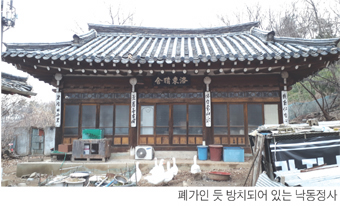 화원동산과 사문진나루는 자타가 공인하는 대구 관광 핫플레이스다. 100대 피아노 콘서트가 개최되고, 유람선이 다니고, 1년 365일 사문진주막촌은 성업 중이다. 하지만 아무도 화원동산 주차장 동편에 자리한 낙동정사에는 관심이 없다. 세상이 변한 만큼 세상 탓을 하고 싶지는 않다. ‘낙동정사여! 언젠가는 알 이 있으니 흙인 듯이 조금만 더 있거라!’