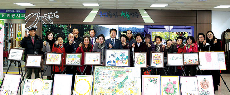 경자년 새해 군청 현관 로비에는 방문객들의 발걸음을 멈추게 하는 가슴벅차고 감동어린 작품 전시회가 열렸다.