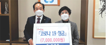 두류 1,2동에서도 기부의 물결이 이어졌다. 종교단체인 금각사(만수 주지스님)는 어려움을 겪는 분들을 위해 써 달라며 100만 원을, 내당교회(담임목사 최봉규)도 100만 원을 전해왔다.