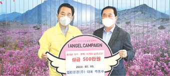 열린환경(대표 박동수)이 지난 5일, 달성군청을 찾아 코로나19 확산방지를 위한 성금 5백만 원을 기탁했다. 박동수 대표는“코로나19 확산으로 대구경북지역의 피해가 심각하다. 더 이상의 확산방지와 피해극복을 위해 작은 보탬이 되고자 성금을 전달하게 되었다”고 말했다.