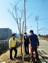 성주군 대가면은 17일 주민과 내방객들에게 쾌적하고 아름다운 가로경관을 제공하기 위해 용흥 1~3리 마을 진입로 약 1.2Km 구간에 5~6년 된 유실수 170주를 심는 ‘특색 있는 마을가꾸기 사업’을 실시했다. 이 사업은 대가면의 특수 시책으로 마을별 특색과 선호도에 따라 수종을 달리하여 용흥1리에는 산사, 2리에는 체리, 3리에는 단감·대봉 나무를 심었다.