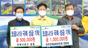 재경성주군향우회(회장 피주환)에서는 지난 16일 성금 3,260만 원을 기탁했다. 재경성주군향우회는 고향발전을 위해 모인 출향인 단체로 지역발전과 번영을 위해 지원을 아끼지 않고 있다.