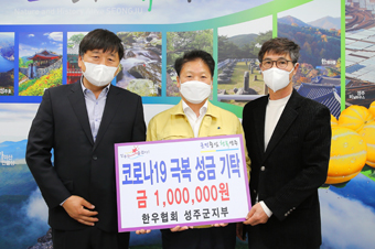 (사)전국한우협회 성주군지부(지부장 김종상)는 19일 코로나19 극복을 위한 성금 100만 원을 기탁했다. (사)전국한우협회 성주군지부는 성주군 관내 200여 명의 한우 사육농가로 구성되어 있다.