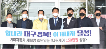 기아자동차 새희망 회원(회장 윤민희)들은 지난 1일 달성군의회를 방문하여 김보경 의원을 통해 달성군청에 방역물품 나린케어 1박스(150만 원 상당)를 기부했다.
