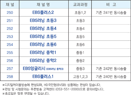 이에따라 푸른방송은 EBS특강 채널을 긴급 편성했다.